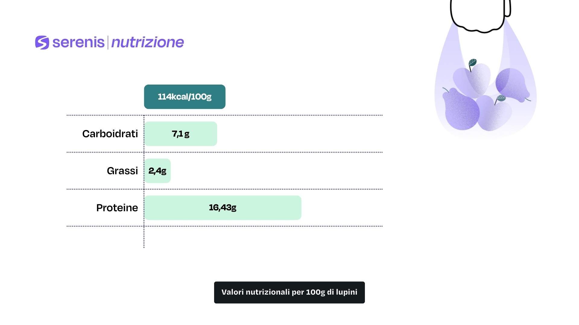 | Componente nutrizionale (per 100g) | Lupini | Lenticchie |