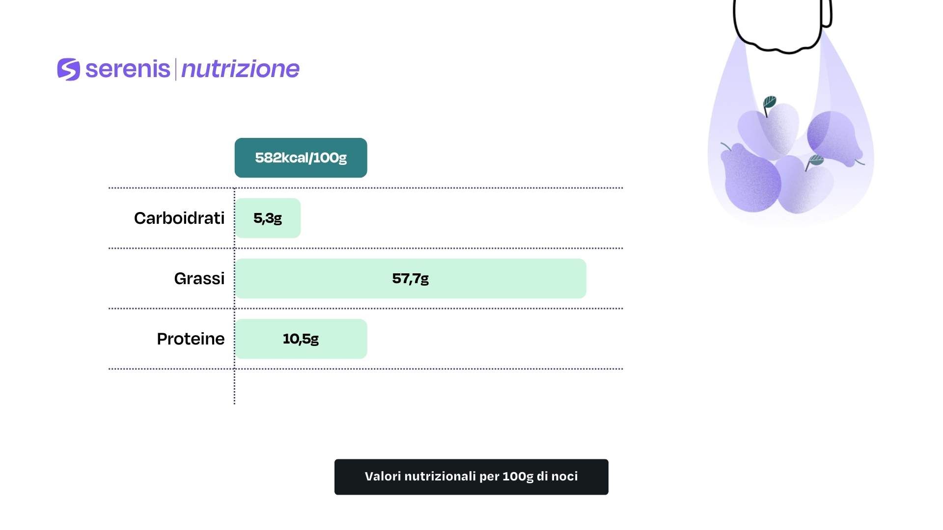 I valori nutrizionali delle noci comuni sono i seguenti: