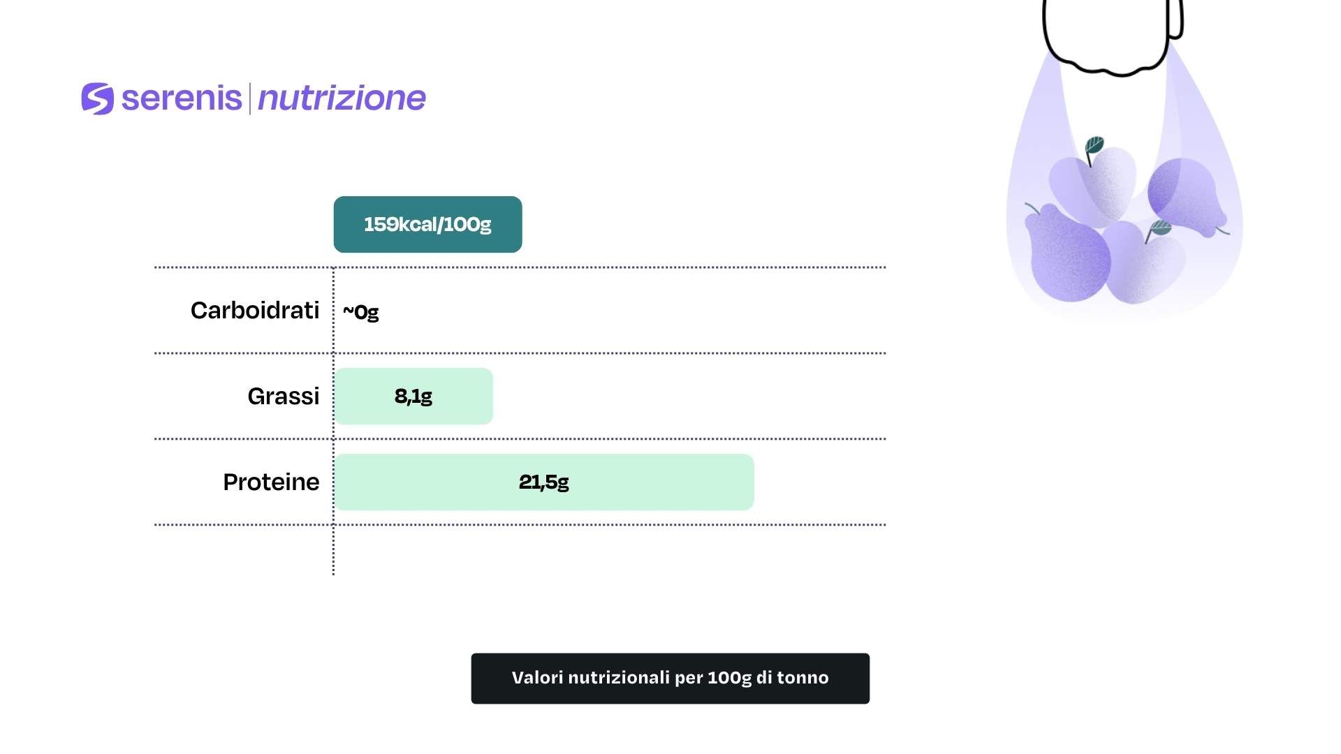 In media, i valori nutrizionali di 100 grammi di tonno fresco sono ripartiti come segue:
