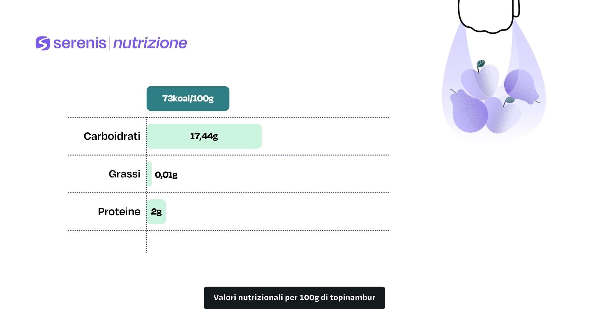 I valori nutrizionali medi per 100 grammi di topinambur sono riassunti nella seguente tabella: