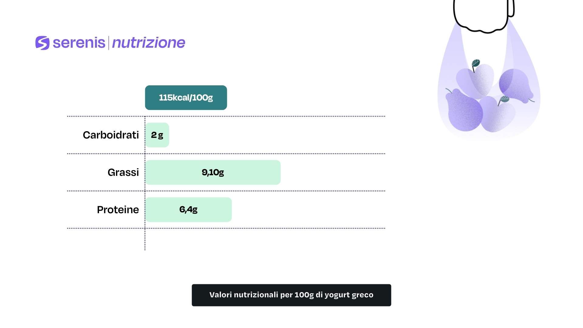 I valori nutrizionali medi di 100 grammi di yogurt greco comprendono:
