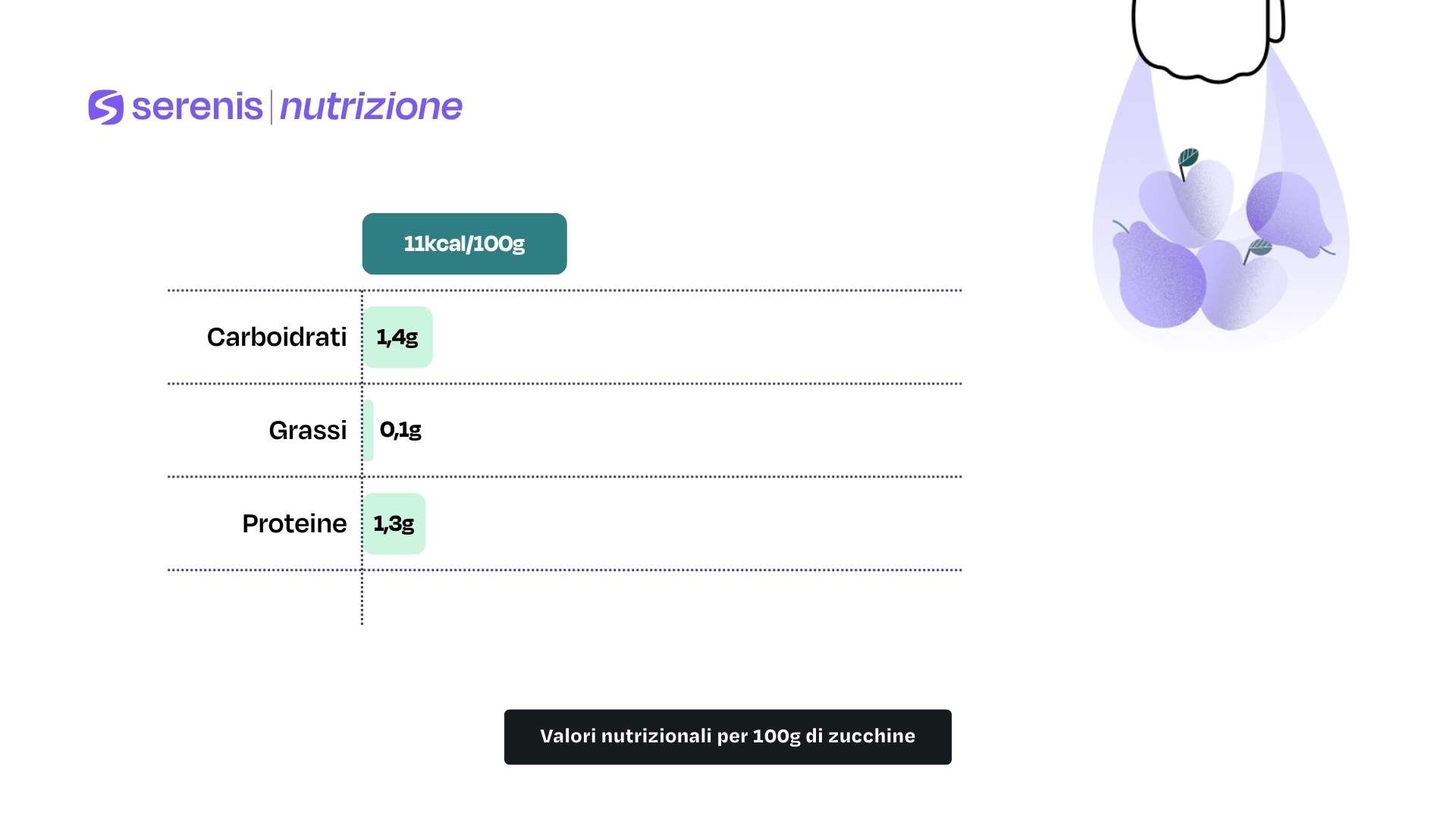 Ad ogni modo, è sempre opportuno inserire le zucchine all'interno di una dieta bilanciata, che preveda una varietà di alimenti per garantire un corretto apporto di tutti i nutrienti. Per un piano alimentare personalizzato e bilanciato, è consigliabile rivolgersi a un nutrizionista, come quelli messi a disposizione dal servizio di consulenza nutrizionale di Serenis.