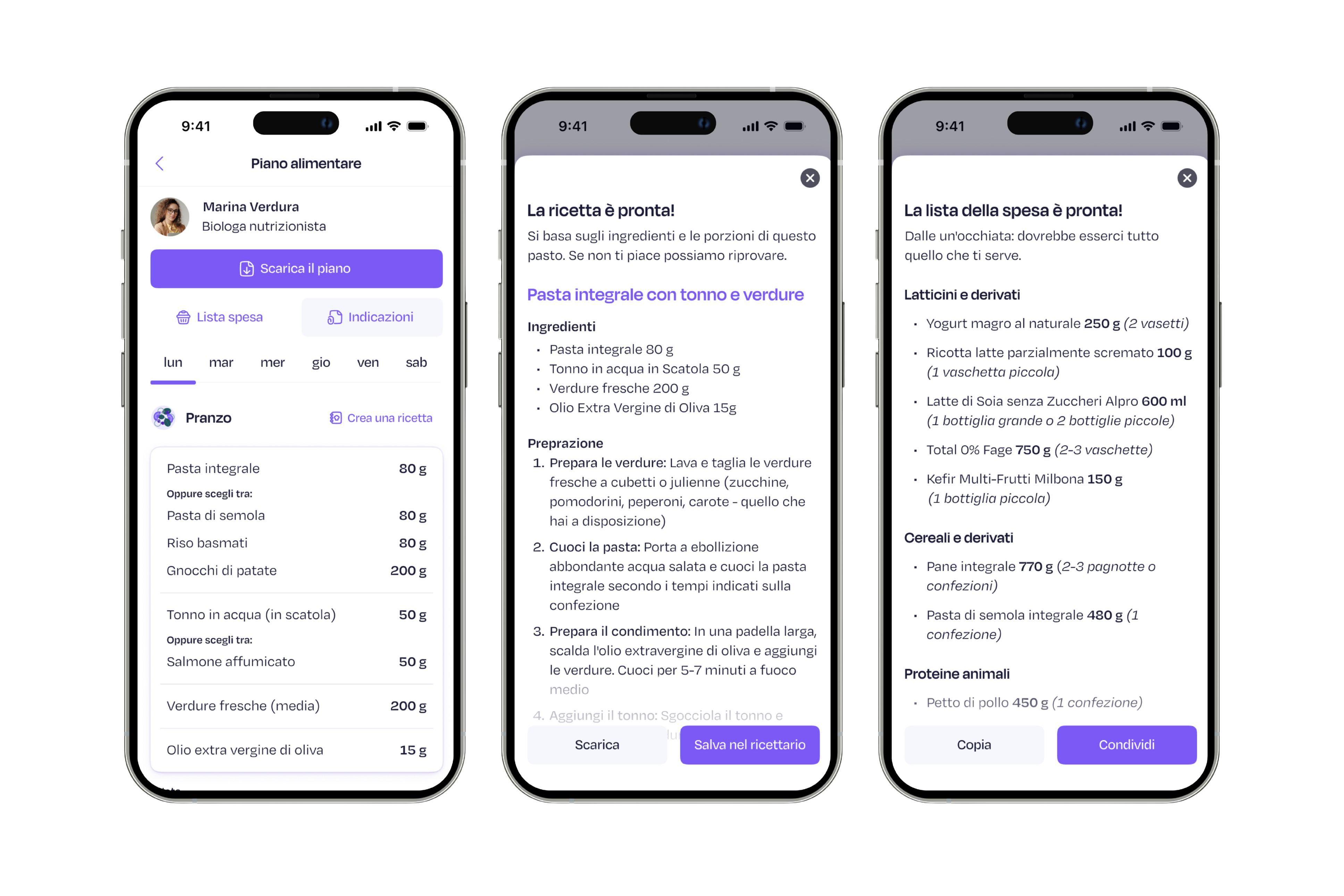 - Ricevi e consulta il tuo piano alimentare nella tua area personale