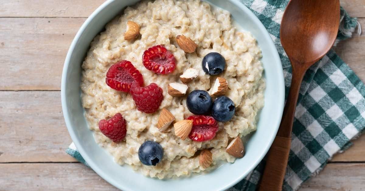 Il porridge è un'opzione proteica e saziante per la colazione. Composto con fiocchi d'avena (interi o tritati) e latte, bevanda vegetale o acqua a cui è possibile, eventualmente, aggiungere proteine in polvere.