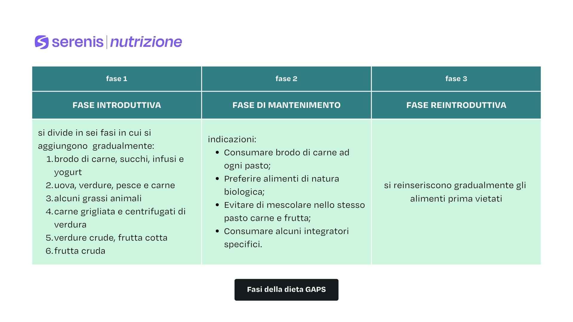 La dieta GAPS è composta di tre fasi: