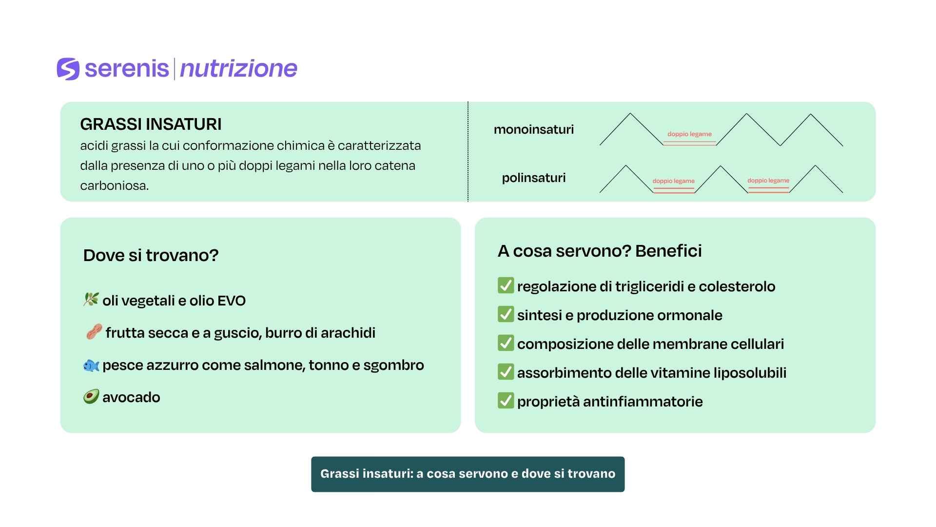 Se vuoi sapere come inserire i grassi insaturi all’interno della tua dieta, in maniera salutare e bilanciata, i nutrizionisti di Serenis sono qui per aiutarti.