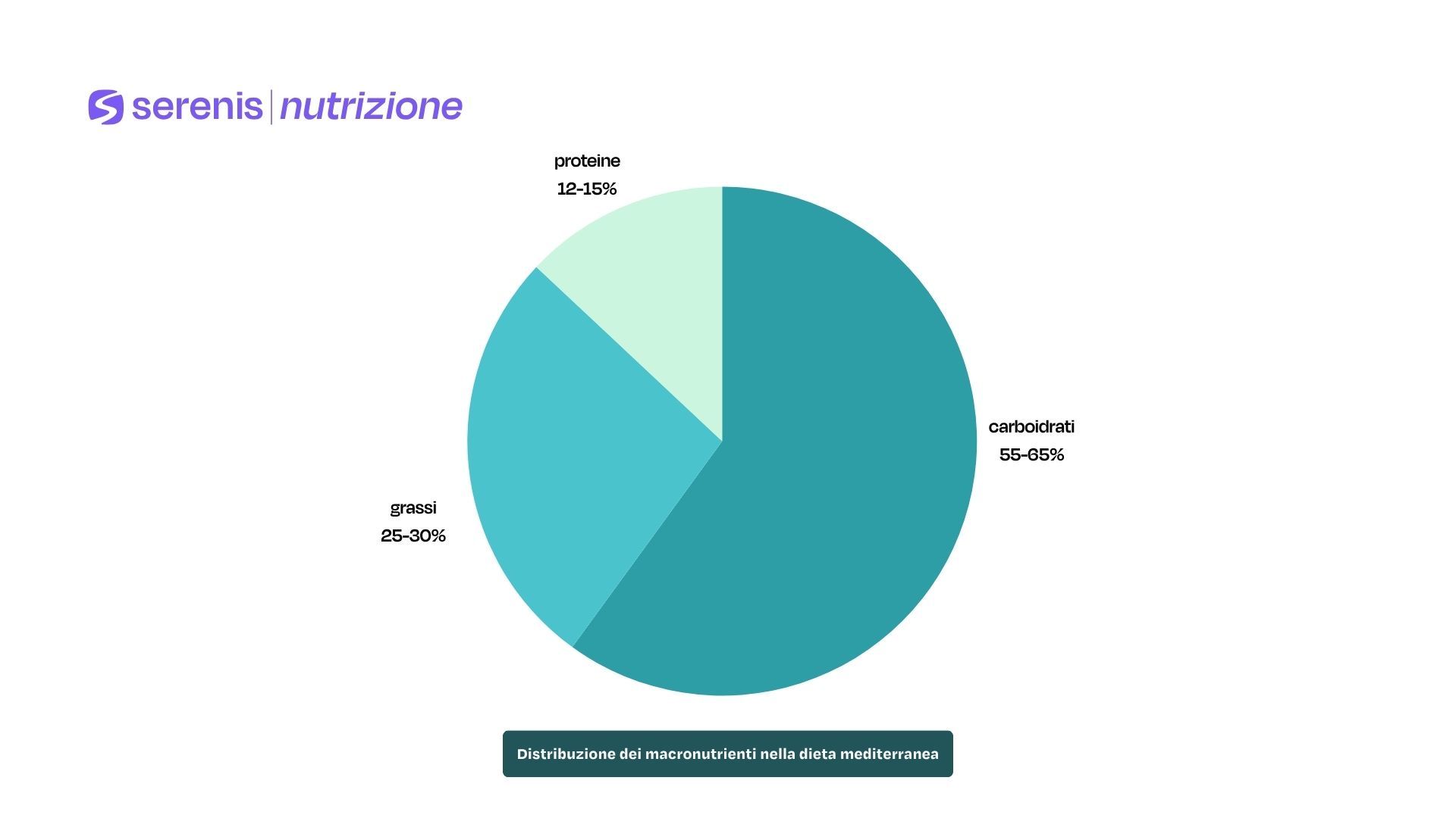 In particolare, le percentuali dei macronutrienti nella dieta Mediterranea sono ripartite come segue: