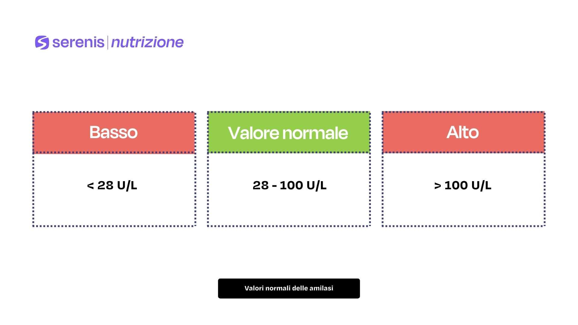 - Amilasi alte: valori elevati di amilasi (superiori a 100 U/L) sono spesso un segnale di malattie pancreatiche come la pancreatite o un tumore. Possono anche essere causati da altre condizioni, tra cui infezioni delle ghiandole salivari, ostruzioni intestinali, ulcere, calcoli o fibrosi cistica, richiedendo ulteriori accertamenti medici.