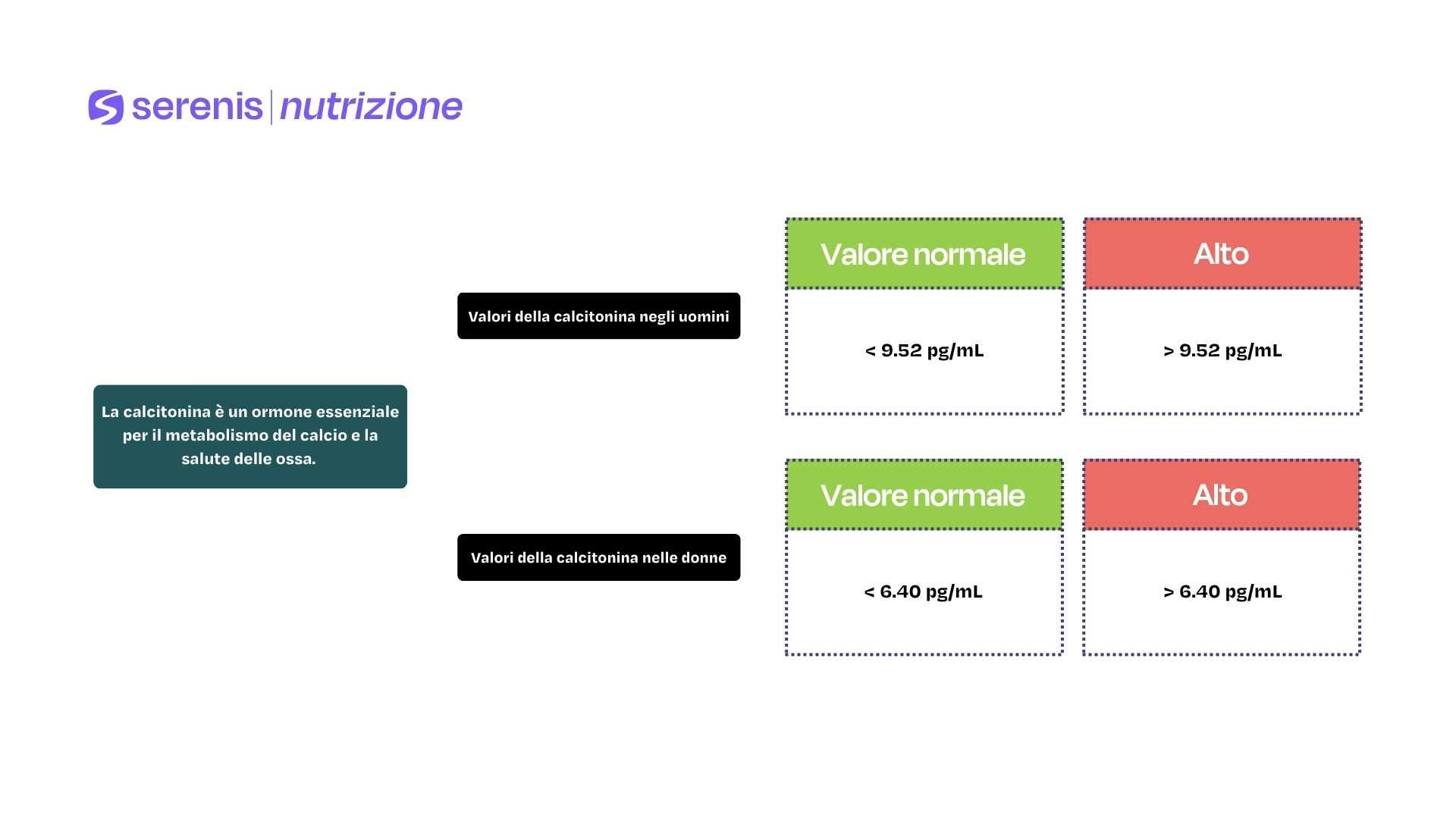 I valori normali della calcitonina variano in base al sesso, nello specifico: