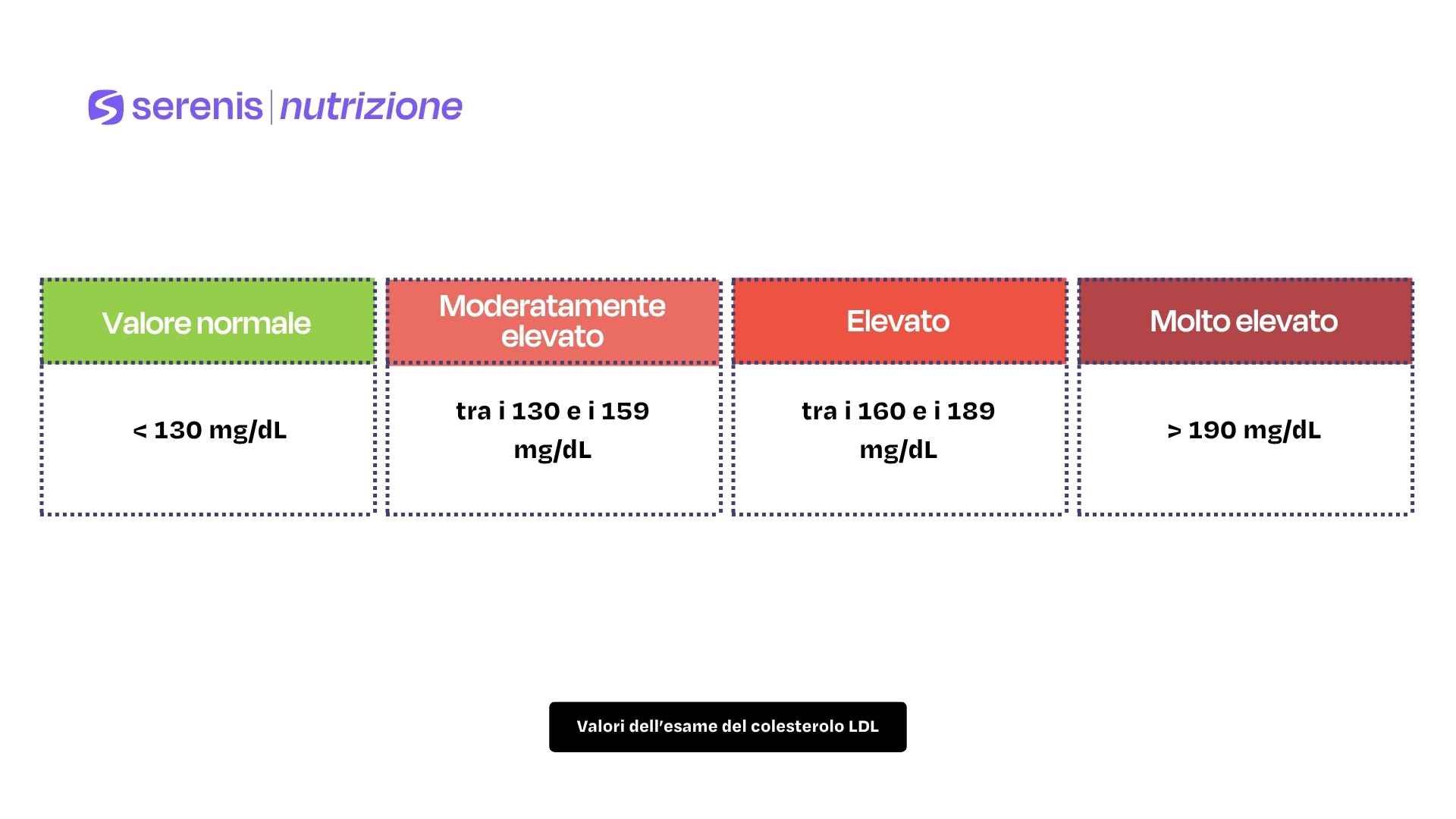 Possiamo poi dividere i valori anomali di colesterolo LDL in tre “fasce”: