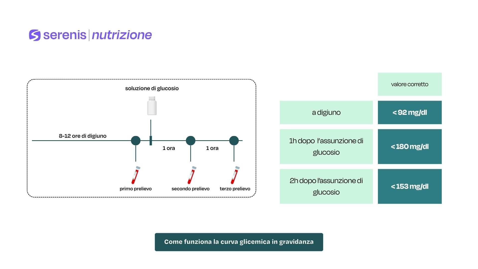 I valori ideali per la curva glicemica in gravidanza variano a seconda del momento in cui vengono misurati durante il test: