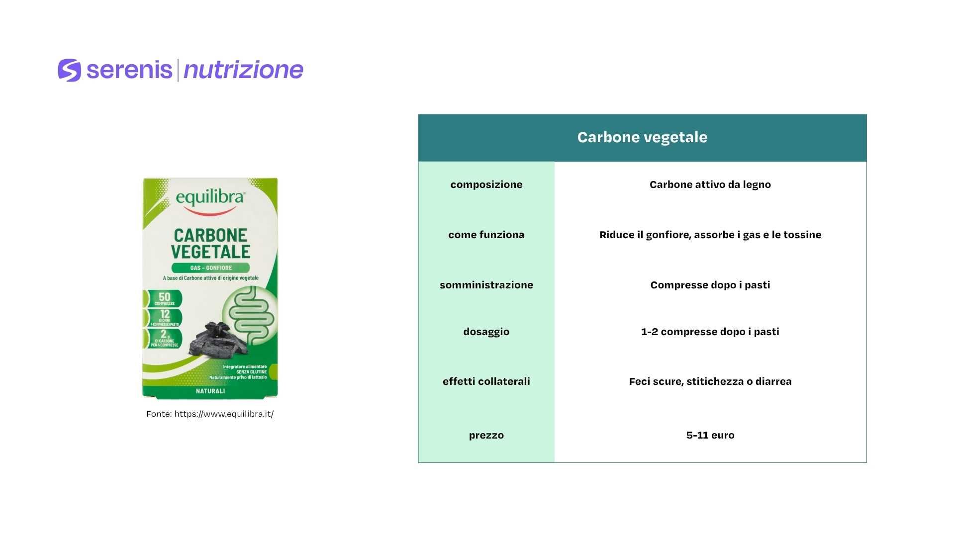Di seguito, una tabella riassuntiva con alcuni tra i migliori integratori di carbone vegetale: