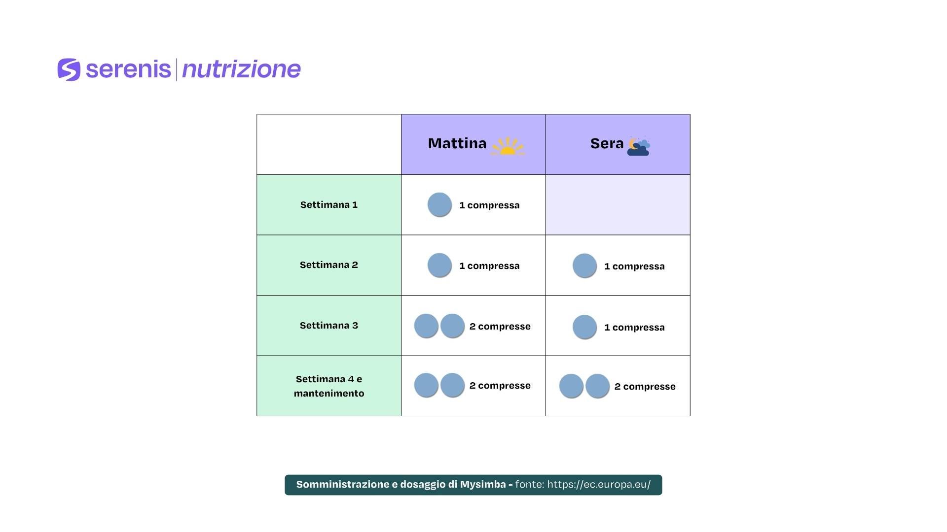 - settimana 4 in poi: due compresse al mattino e due compresse la sera