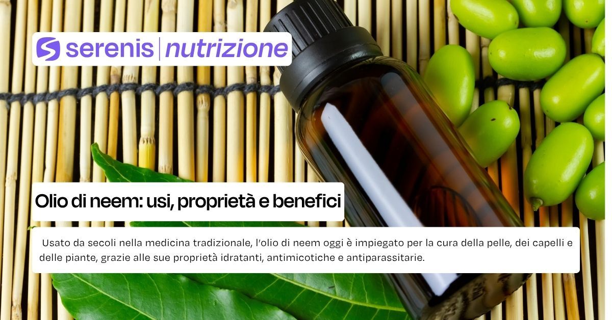 L’olio di neem è un olio vegetale usato su pelle, capelli, piante e animali per le sue proprietà idratanti, emollienti, antimicotiche e antiparassitarie. È noto per i suoi molteplici usi topici e, in alcuni casi, per i benefici osservati su alcuni problemi della cute, tra cui il trattamento delle infiammazioni locali, e dei capelli.