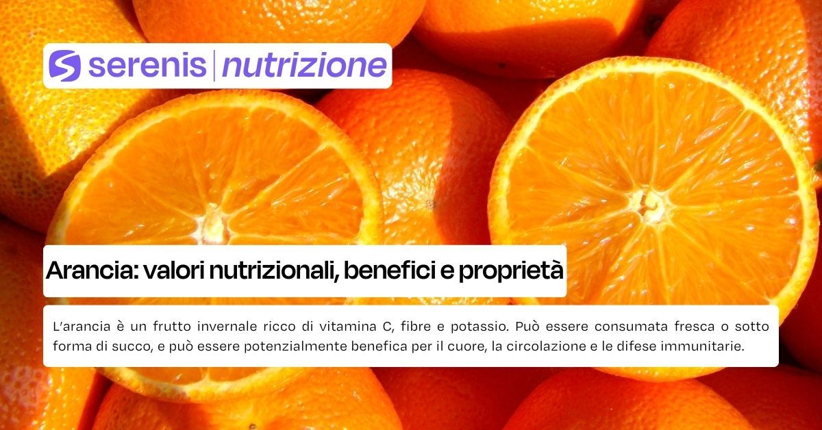 L’arancia è un frutto invernale ricco di vitamina C, fibre e potassio. Può essere consumata fresca o sotto forma di succo, e può essere potenzialmente benefica per il cuore, la circolazione e le difese immunitarie.