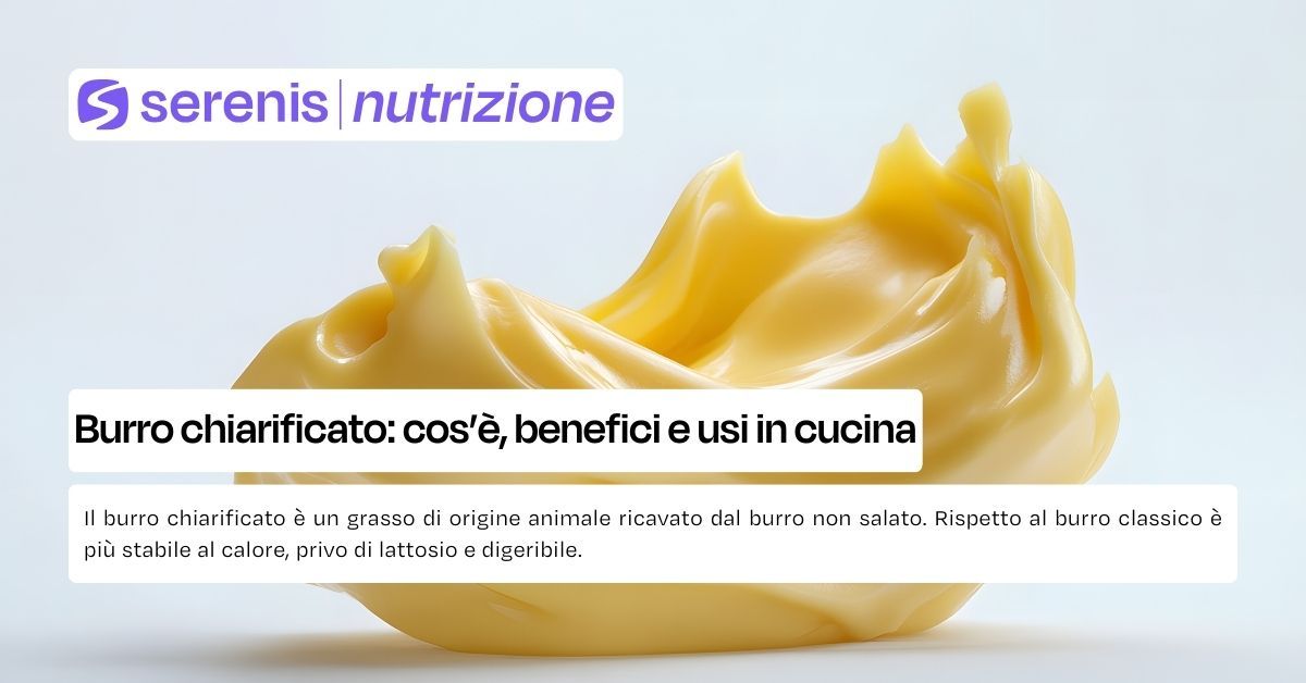 Il burro chiarificato è un grasso derivato dal burro non salato. Ha un punto di fumo elevato, è privo di lattosio e contiene vitamine liposolubili e acidi grassi facilmente digeribili.