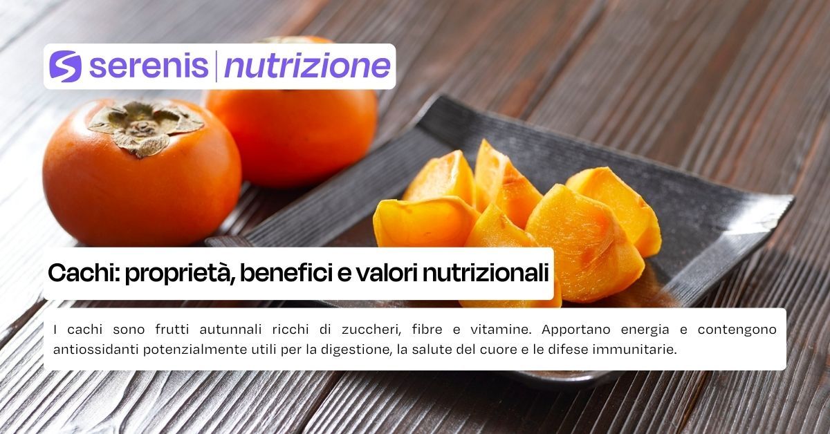 I cachi sono frutti autunnali, molto dolci e ricchi di zuccheri, fibre e vitamine. Contengono tutta una serie di composti antiossidanti utili a sostenere digestione, vista, cuore e sistema immunitario.