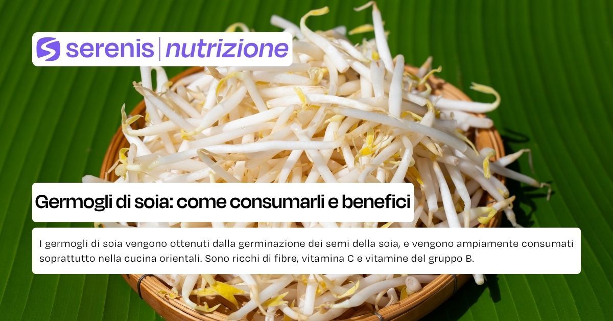 I germogli di soia vengono ottenuti dalla germinazione dei semi della soia, e vengono ampiamente consumati soprattutto nella cucina orientali. Sono ricchi di fibre, vitamina C e vitamine del gruppo B.