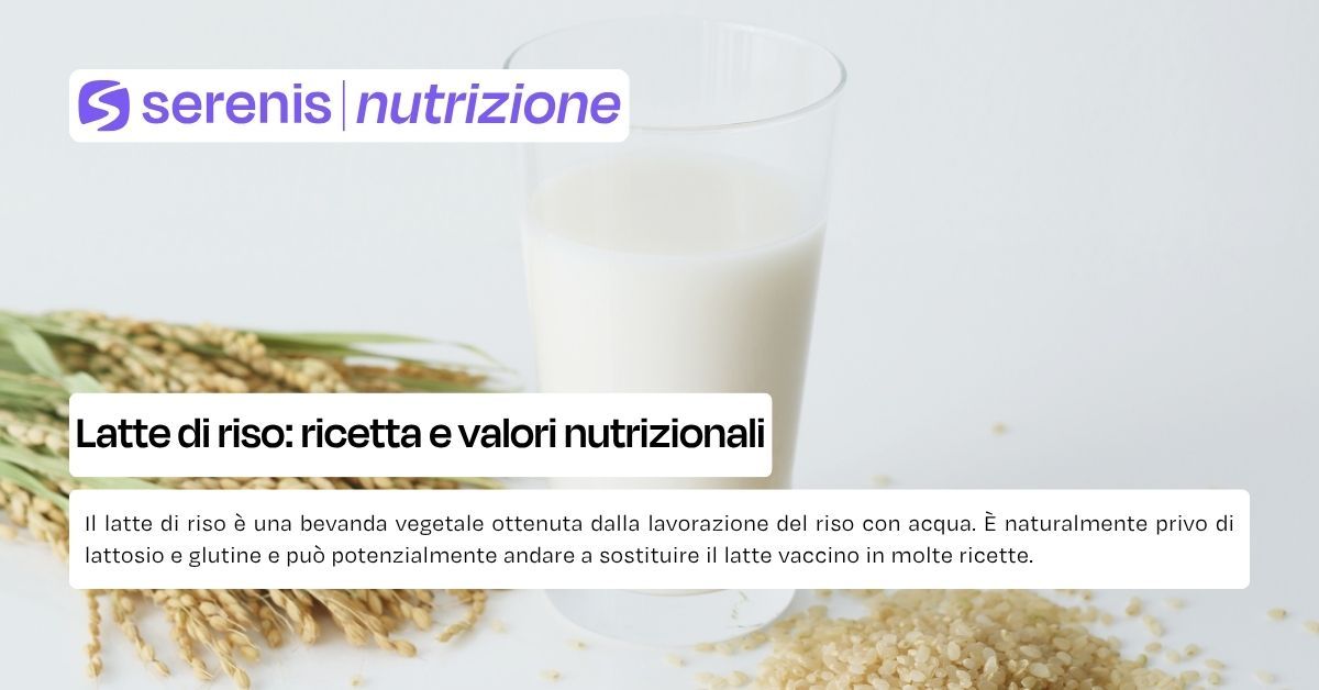 Il latte di riso è una bevanda vegetale priva di lattosio e glutine, ottenuta dalla lavorazione del riso con acqua. Può essere usato come alternativa al latte vaccino, da bere o come ingrediente.