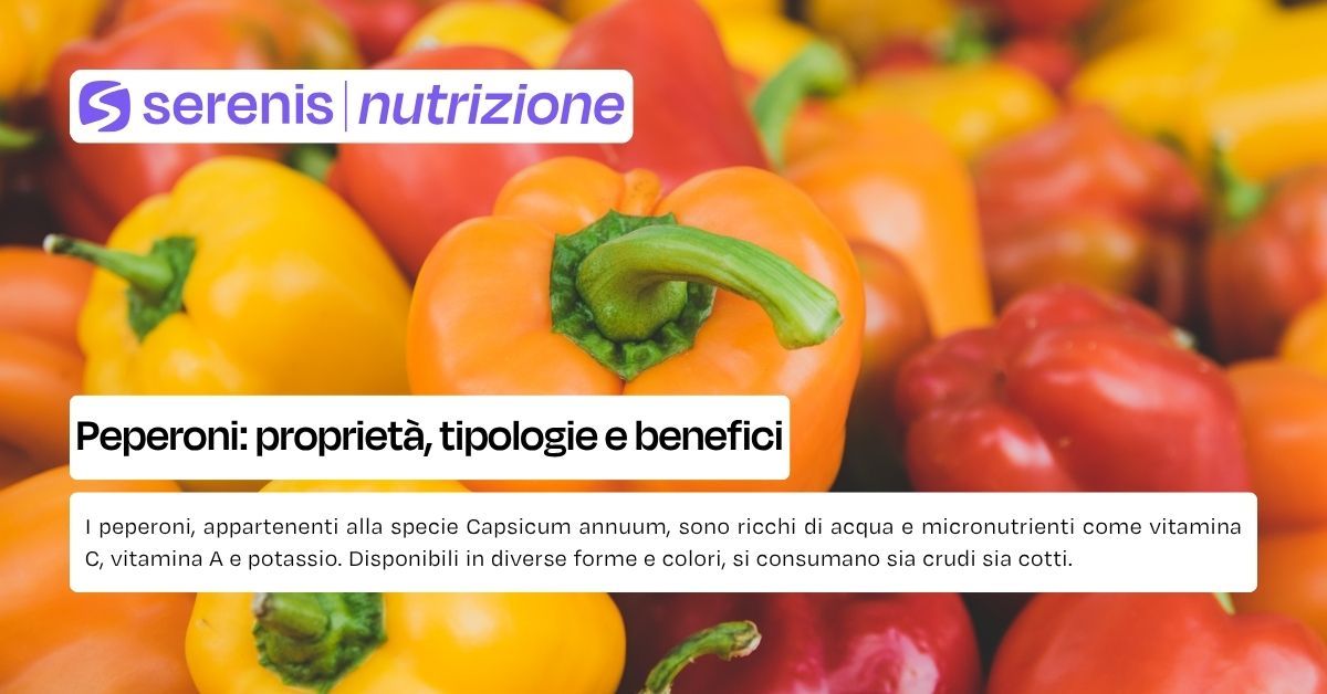 I peperoni sono frutti ricchi di acqua, vitamina C e fibre. Ne esistono diverse varietà, che differiscono per forma e colore. Possono essere consumati sia crudi, sia cotti.