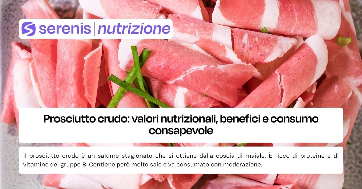 Il prosciutto crudo è un salume stagionato che si ottiene dalla coscia di maiale. È ricco di proteine e di vitamine del gruppo B. Contiene però molto sale e va consumato con moderazione.