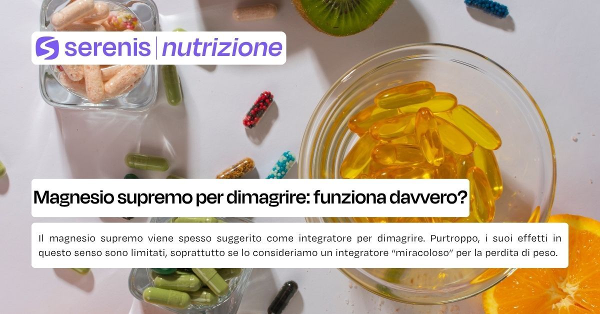 Il magnesio supremo viene spesso suggerito come integratore per dimagrire. Purtroppo, i suoi effetti in questo senso sono limitati, soprattutto se lo consideriamo un integratore “miracoloso” per la perdita di peso.